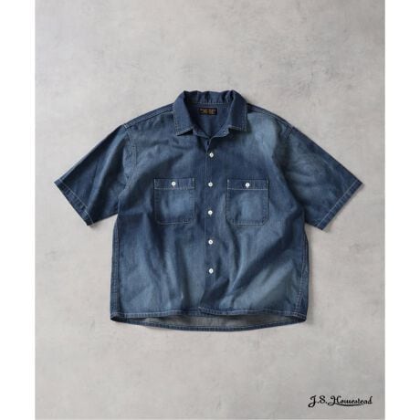 《予約》シャンブレー オープン カラー 半袖 シャツ
