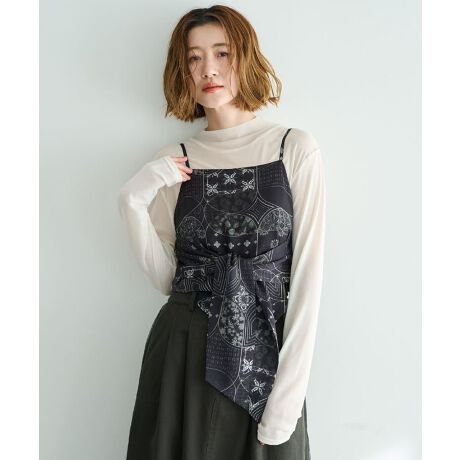 落ち感のあるスカーフ柄が表情豊かなオーバーキャミトップス。