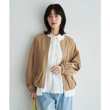 軽やかな着心地と洗練されたフォルムが魅力のノーカラーブルゾン。