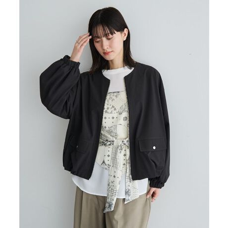軽やかな着心地と洗練されたフォルムが魅力のノーカラーブルゾン。
