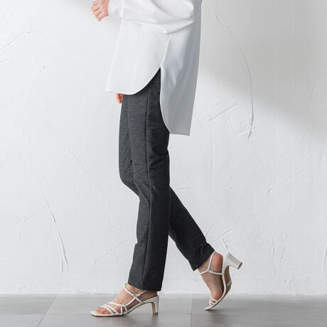 おなか周りはすっきり見えながらも、ウエスト全体にゴムを通しているので、締め付け感もなく、楽に履いていただけます。