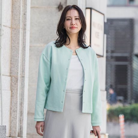 滑らかな表面感で、カジュアルでありながら上品な印象に仕上げています。