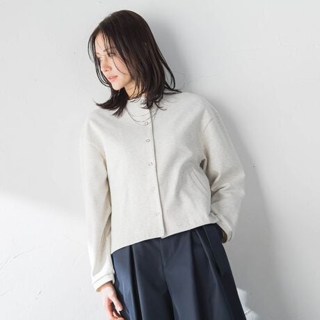 軽やかな綿/ポリエステルのダンボールカットソーを使用したカーディガン。