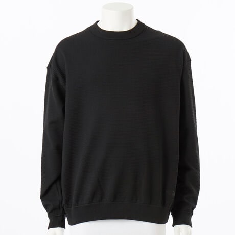 酷暑の気候に活躍する、通気性と遮熱性、UVカット機能を備えた、リップル柄のニットソー/特徴・リップル柄の編地設計により通気性を高め、衣服内環境を快適に保つ・光の透過を抑えるセミダル原料と、紫外線散乱効果の高い酸化チタンを含めた糸でUVカット、遮熱効果を高める・UVガード(UPF30-50+、紫外線カット率90%以上)機能付き/生地・素材・生地の裏面は凹凸のある組織で編み上げ、肌離れがよい/機能・デザイン・襟、袖、裾はリブ仕様・ゆったりと着こなせるリラックスシルエット・同素材のショーツ(NB42637)とのセットアップもおすすめ/おすすめシーン・ライフスタイル、アウトドア、室内でのリラックスタイム