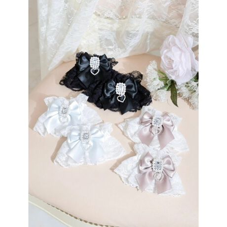 繊細なレースに大ぶりリボンを重ねた、手元を華やかに彩るカフス。