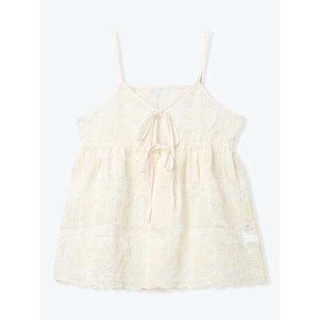繊細な花刺繍をあしらった、やわらかな印象のキャミソールビスチェ。