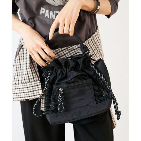 春夏らしいメッシュ素材を使用した2WAY巾着バッグ。