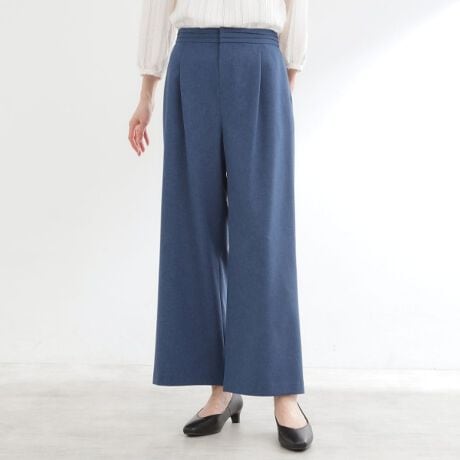 ほどよく落ち感のある素材を使用した上品なストレートワイドパンツ。