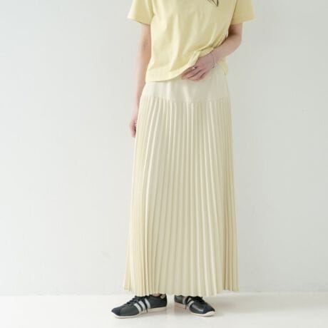流れるようなプリーツが特徴のロングスカートは、見た目以上の動きと軽やかさを演出。