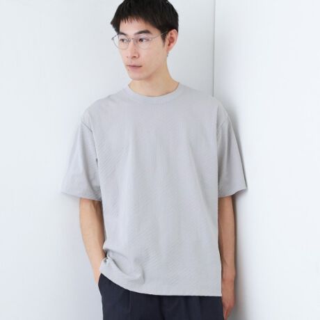 無地見えしながら、さりげなく差がつくジオメトリック柄Tシャツ。