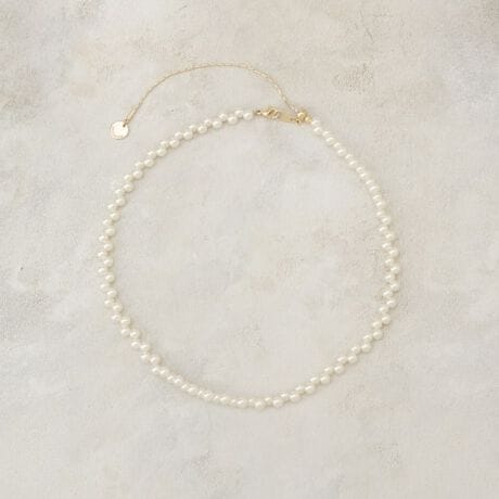 フェイクパールビーズが可愛く長さ調節が簡単なスライド式ネックレス