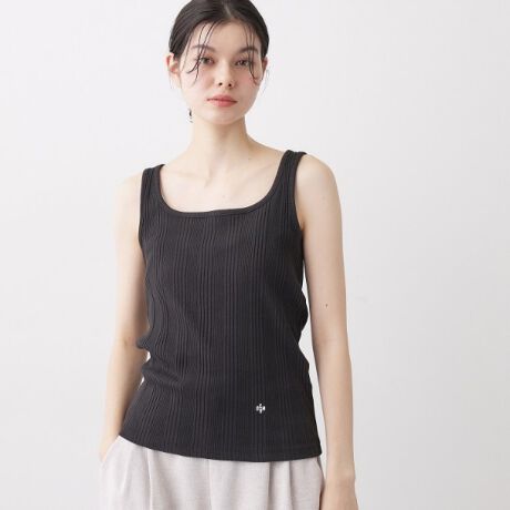 針抜き素材のタンクトップ。