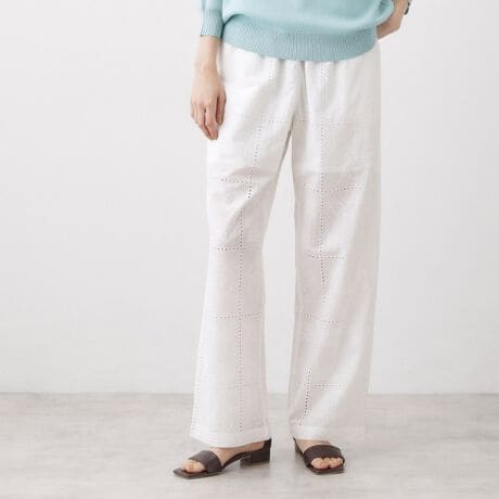スクエアレース刺繍が甘すぎない印象の、イージーパンツです。