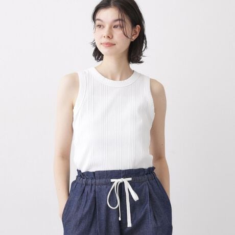 少し衿が丸首っぽいノースリーブ型のタンクトップです。