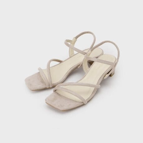 ・スクエアトゥのアンクルストラップヒールサンダル