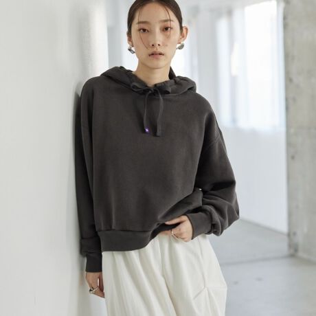 ・製品染めとバイオウォッシュ加工を施すことにより、着込まれたスウェットのような色味と風合いを表現