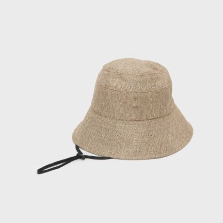 ゴールドプレートのワンポイントが上品な麻風の生地を使用したハット。