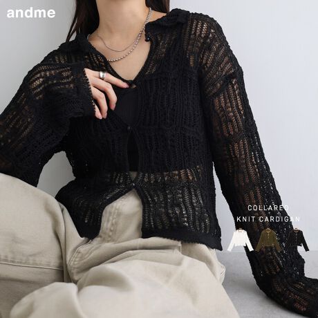 透かし編み ニット シャツ カーディガン