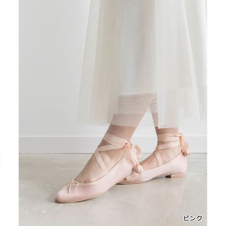 サテンリボンが足元を華奢に見せてくれる、トレンドライクな女性らしい一足です。
