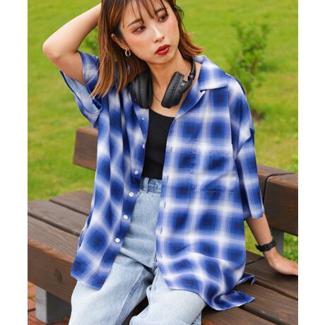 【22zps003】ドレープ半袖ルーズオープンカラーシャツ