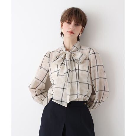 シアーチェックボウブラウス