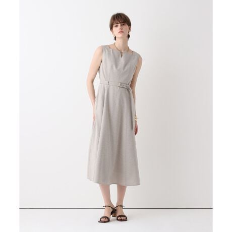 リネンライクの爽やかな素材が夏らしさを演出してくれるフィット&フレアシルエットのノースリーブワンピース。スクエアネックの襟元が顔周りをシャープに美しく見せてくれ、裾に向かって広がるラインがエレガントな美シルエットな一着です。ジャケットからカーディガンまで合わせやすいので通勤から特別なシーンにまで様々な用途で使いまわせるドレスです。落ち着いたエクリュ、大人っぽいオレンジ、鮮やかなブルーの3色展開です。