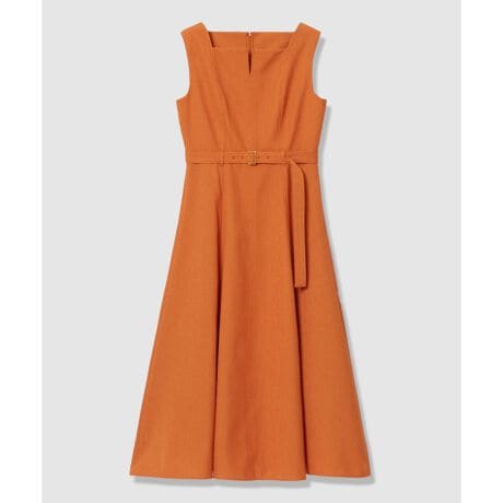 リネンライクの爽やかな素材が夏らしさを演出してくれるフィット&フレアシルエットのノースリーブワンピース。スクエアネックの襟元が顔周りをシャープに美しく見せてくれ、裾に向かって広がるラインがエレガントな美シルエットな一着です。ジャケットからカーディガンまで合わせやすいので通勤から特別なシーンにまで様々な用途で使いまわせるドレスです。落ち着いたエクリュ、大人っぽいオレンジ、鮮やかなブルーの3色展開です。