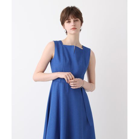リネンライクの爽やかな素材が夏らしさを演出してくれるフィット&フレアシルエットのノースリーブワンピース。スクエアネックの襟元が顔周りをシャープに美しく見せてくれ、裾に向かって広がるラインがエレガントな美シルエットな一着です。ジャケットからカーディガンまで合わせやすいので通勤から特別なシーンにまで様々な用途で使いまわせるドレスです。落ち着いたエクリュ、大人っぽいオレンジ、鮮やかなブルーの3色展開です。
