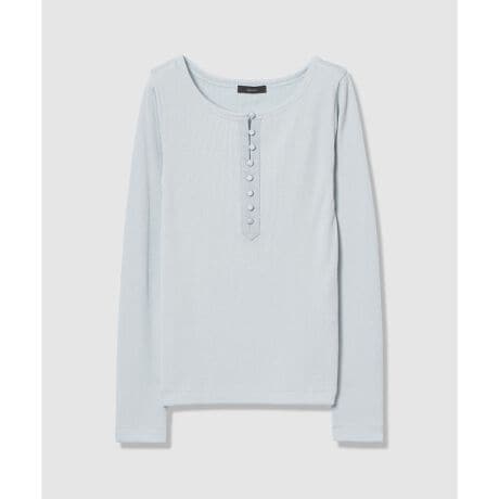 プレーティングによるほどよいツヤ感と肌当たりの良さが魅力のテレコ素材を使用したヘンリーネックプルオーバー。体にすっきりと沿うシルエットながらリラクシーで心地よく、デイリーに取り入れやすい一枚です。