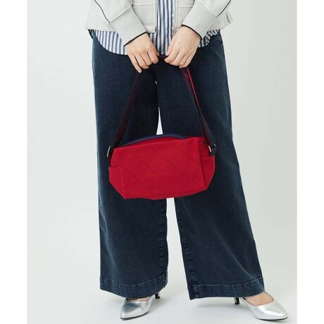 マチのあるスクエア型のニットショルダーバッグです。ショルダーは40mmの広幅で肩への負担を和らげてくれます。ショルダーにはGRのロゴ入りで、コーディネートのアクセントになってくれます。表前面にはタタキ付けのアウトポケットがあり、スマホも楽に入るサイズ感です。表面のポケットにはマグネットが付いているので、安心して出し入れしていただけます。