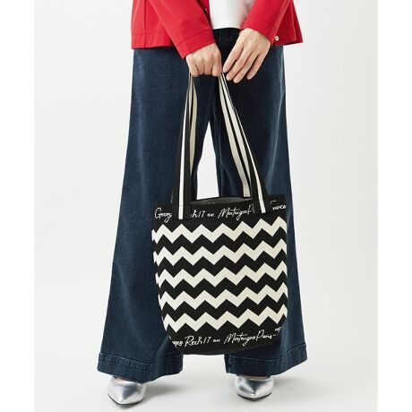 A4サイズが楽々入る少し縦長の形状のニット素材のトートバッグです。ショルダーは肩掛け出来る長めのサイズで、厚手のニットやコートの上からでも楽に肩に掛けられます。全体にジグザグ模様、上下にはGRのロゴを入れたオリジナルのジャガードニットバッグです。内装後面には吊りポケット付きなので、スマホやパスケースなどの小物を仕分けして収納していただけます。