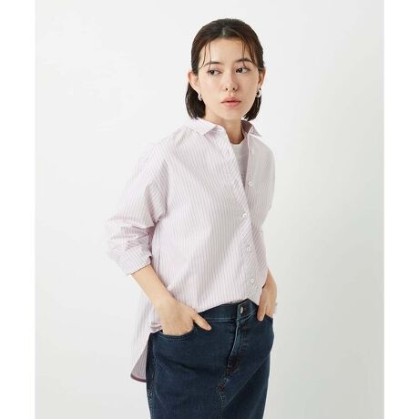 シンプルでベーシックなレギュラーカラーシャツです。襟は小さめでシャープな雰囲気になっています。春らしいカラーストライプがコーディネートの鮮度を高めてくれます。インナーとしても、羽織としても使いやすいシンプルなデザインでロングシーズン活躍してくれます。
