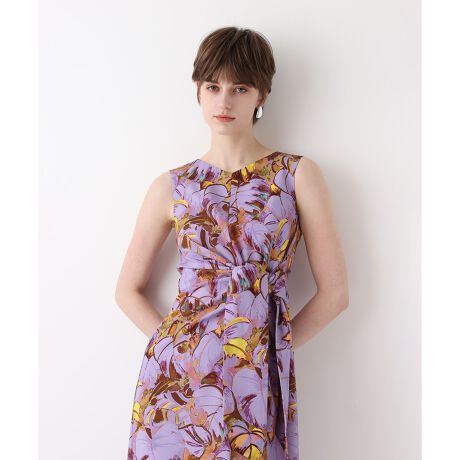 フロントのツイストドレープがポイントの、allurevilleオリジナルの鮮やかなプリントドレス。水彩絵の具の様なタッチの爽やかなボタニカル柄を、シャリ味のある肌触りの良い素材にプリントしました。シンプルながらも立体的なフォルムが美しく、体のラインを上品に引き立ててくれます。また、Vネックが顔周りをスッキリ見せ、洗練された印象に。デイリーからオフィス、特別なシーンまで幅広く活躍する美スタイルな万能ドレスです。ウエストのリボンは緩めたり締めたりと自由が効くので、その日の気分で楽しめるのも嬉しいポイントです。