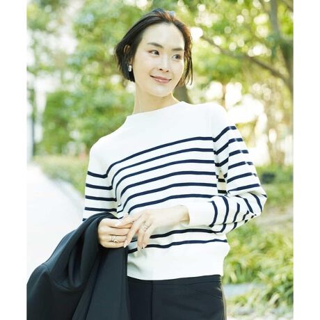 袖に軽くパフを効かせた、ボトルネックのプルオーバー。薄手でカットソー感覚で着用でき、端境期から実需期まで長く活躍します。ホールガーメントならではのストレスフリーな着心地と、きちんと感のある上品なフォルムが魅力。着回しやすい無地と、コーディネートのアクセントになるパネルボーダーの2タイプで展開しています。