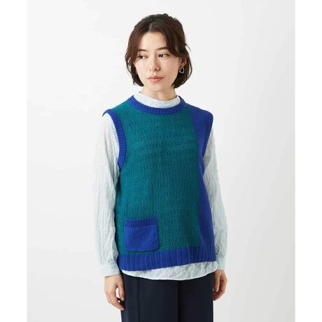 編地の表情が引き立つので、夏には一枚着としてはもちろん、シンプルなブラウスやシャツに重ねたレイヤードスタイルも着るだけでスタイリングが決まります。合わせのボトムは、やわらかな杢調の編地なので、コットン素材のスカートやパンツが高相性。ナチュラルな雰囲気にコーデがまとまります。同素材のニット【NHFED11260】もございます。