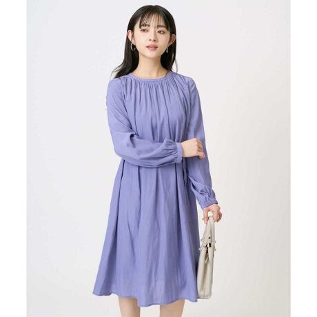 ネックと肩に細やかなギャザーを施し、歩くたびにきれいに揺れるドレープ感が大人の雰囲気漂う、ギャザーワンピース。緩く立ち上がったバンドカラーが首周りをすっきりとみせてくれます。ウエストは付属のベルト付き。