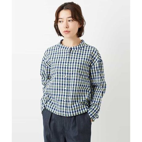 ジャンニ ロ ジュディチェ定番素材に新しい柄をプリントして再登場!コットン素材に塩縮加工を施すことで、素材の凹凸感が特徴の素材。色目を効かせたギンガムチェック柄をオリジナルプリントを表現しました。 チェック部分は配色にすることで、新鮮な印象を持たせて、春夏に最適な素材に仕上げています。