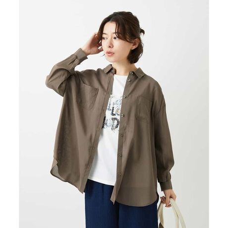 ゆったりとしたサイズ感のなめらかな着心地のブラウス。ヒップラインが隠れる着丈で細身パンツとも好相性。羽織としても一枚着としても◎。きれいめカジュアルコーデにぴったりな一枚です。