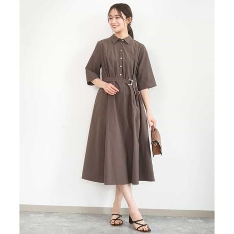 お仕事やお出かけにも便利なシャツワンピース。取り外し可能なDカンベルトでウエストマークをしたメリハリのあるシルエットと、長めのハーフスリーブが気になる二の腕もさりげなくカバーしてくれます。