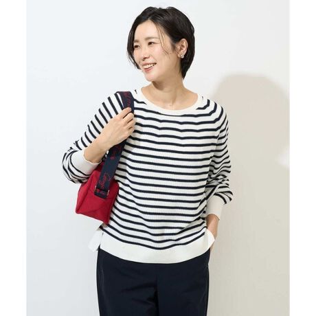 ・脇線を前に振ることで着痩せ効果を発揮し、前後差をつけてヒップをカバーしてくれる女性に嬉しいデザインのニット。