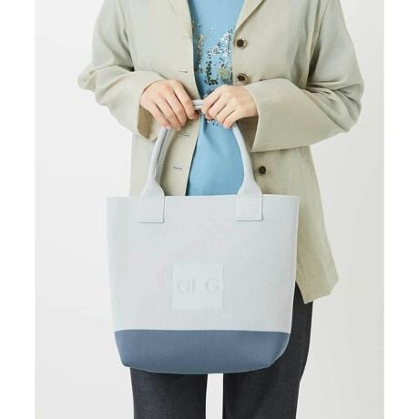 ライトベージュ×ピンクベージュ、ライトグレー×ブルーグレーのツートンカラーで編み上げたニットバッグシリーズの新作です。落ち着いた配色で、さりげなく【GLG】ロゴを無地ジャカードで表現しています。コーディネートに取り入れやすく、上品なアクセントになるアイテムです。