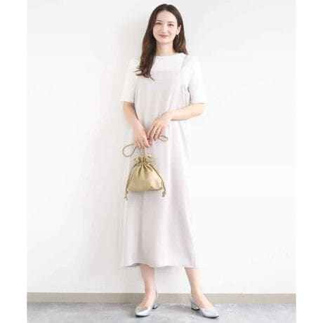 汎用性の高いさらりとしたシンプルなキャミワンピース。裾に向かってストンと落ちるドレープ感がきれいなシルエットです。