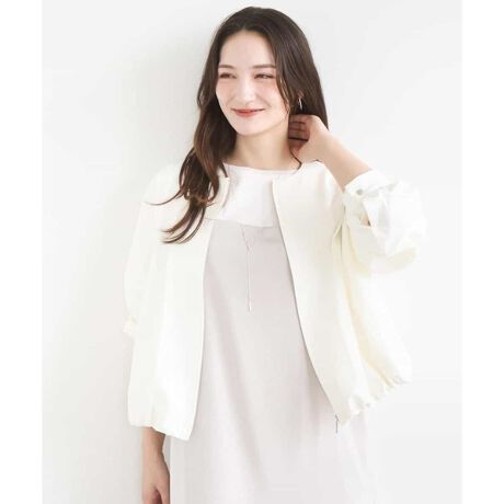 すっきりとした襟ぐりデザインが女性らしい印象のブルゾン。軽やかな着心地で季節の変わり目にぴったりな一枚です。裾はドローコード仕様で、調整可能。