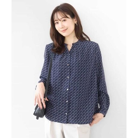 お仕事などのONシーンにもぴったりな総柄ブラウスは、ジャケットとも相性が良いのでスーツのインナーにも最適。合わせるボトムも選ばないので、毎日のお仕事に活躍してくれます。