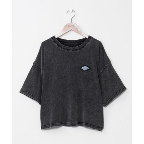 [型番:46R-6107-2026]デニム風の洗い加工が施されたTシャツ。背中に施されたヤシの木と波の刺しゅうが印象的で、胸元のワッペンがアクセントになっています。程よくゆとりのあるシルエットで、カジュアルながらも抜け感のあるスタイルに。デニムやスカートと合わせてリゾート気分を楽しめる一枚です。製品洗いのため色合いに個体差があります。