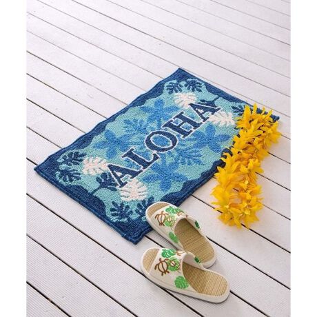 ハワイのモチーフが施された毛足のしっかりしたパイルマット。やや大きめサイズで玄関マットとしても活躍します。ふかふかの踏み心地と滑り止め付きで使いやすく、毎日の暮らしにハワイの明るい風を添えます。