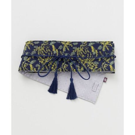 [型番:7JNP6109-2026]春の花々を描いた昭和モダンなデザインの帯ベルト。表は華やかな花柄、裏は上品な小紋柄で、リバーシブル仕様が魅力です。タッセル付きの紐がアクセントとなり、巻くだけで装いに和の趣をプラス。ワンピースやチュニックなど洋装にも合わせやすく、手軽に和モダンコーデが楽しめる一品です。