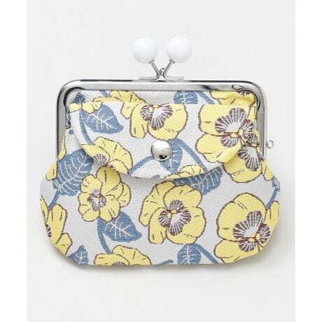 [型番:7JMP6103-2026]春の花々をモチーフにした、昭和モダンな雰囲気漂う玉付きがま口財布。ミモザやポピー、パンジーなど季節の彩りを上品に描いたデザインが魅力です。内側に小さながま口が付いた親子タイプで、小銭とお札を分けて収納できる便利なお財布です。