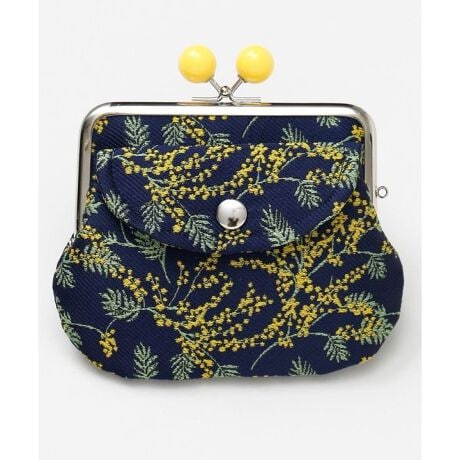 [型番:7JMP6103-2026]春の花々をモチーフにした、昭和モダンな雰囲気漂う玉付きがま口財布。ミモザやポピー、パンジーなど季節の彩りを上品に描いたデザインが魅力です。内側に小さながま口が付いた親子タイプで、小銭とお札を分けて収納できる便利なお財布です。