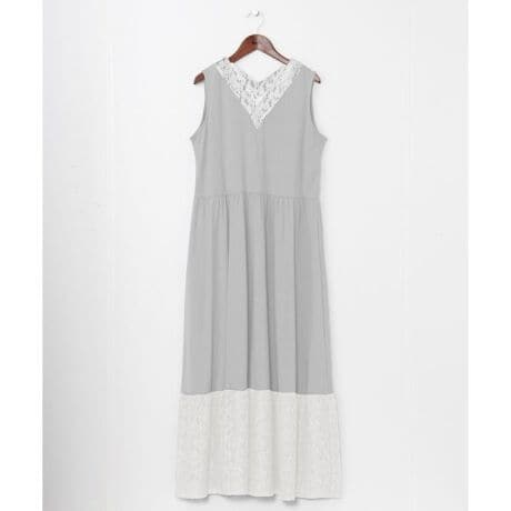 [型番:7CA-6103-2026]レースをあしらったワンピース型のインナー。ワンピースの下に重ねると、襟元と裾からレースが覗く華やかなデザインです。身頃には肌ざわりの良い綿素材のカットソーを使用。薄手で重ね着してももたつかず、コーディネートの幅を広げてくれる便利なワンピースです。